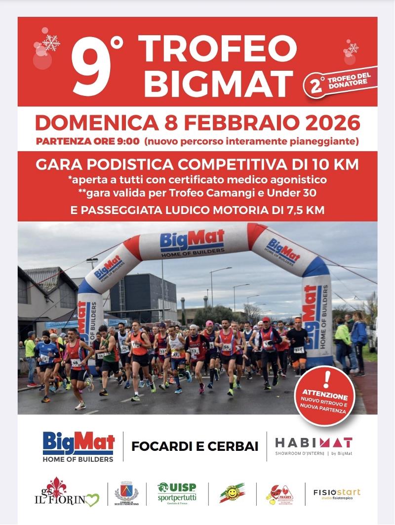 08 febbraio 2026MARATONINA DE' 6 PONTI "LA MEZZA DI AGLIANA"AGLIANA Dettagli 08 febbraio 20268 TROFEO BIGMAT COMPETITIVA CHIUSURA ISCRIZIONI VENERDI 6 FEBBRAIO ORE 12NUOVO SHOWROOM HABIMAT FOCARDI E CERBAI, IN VIALE ARIOSTO 500/502 - SESTO F.NO Dettagli 15 febbraio 2026MEZZA MARATONA CITTA' DI SCANDICCI - CHIUSURA ISCRIZIONI 10 FEBBRAIO ORE 12 IN PUNTOPIAZZA RESISTENZA 50018 SCANDICCI FI Dettagli 15 febbraio 2026MEZZA MARATONA CITTA' DI SCANDICCI - CHIUSURA ISCRIZIONI 7 GENNAIO ORE 12 IN PUNTOPIAZZA RESISTENZA 50018 SCANDICCI FI ITA Dettagli 29 marzo 2026Firenze Halfmarathon 2026 - chiusura iscrizioni 20 gennaio ore 12.00PIAZZA SANTA CROCE Dettagli 29 marzo 2026Firenze Halfmarathon 2026 - chiusura iscrizioni 18 dicembre ore 12.00PIAZZA SANTA CROCE Dettagli 29 marzo 2026Firenze HalfmarathonPIAZZA SANTA CROCE Dettagli 03 maggio 2026TRASFERTA NAVE A TRIESTE 3 MAGGIO 2026 - CHIUSURA ISCRIZIONI 2 DICEMBRE 25 ORE 12!!!TRIESTE PARTENZA DA DUINO E ARRIVO A TRIESTE IN PIAZZA DELL'UNITA' Dettagli